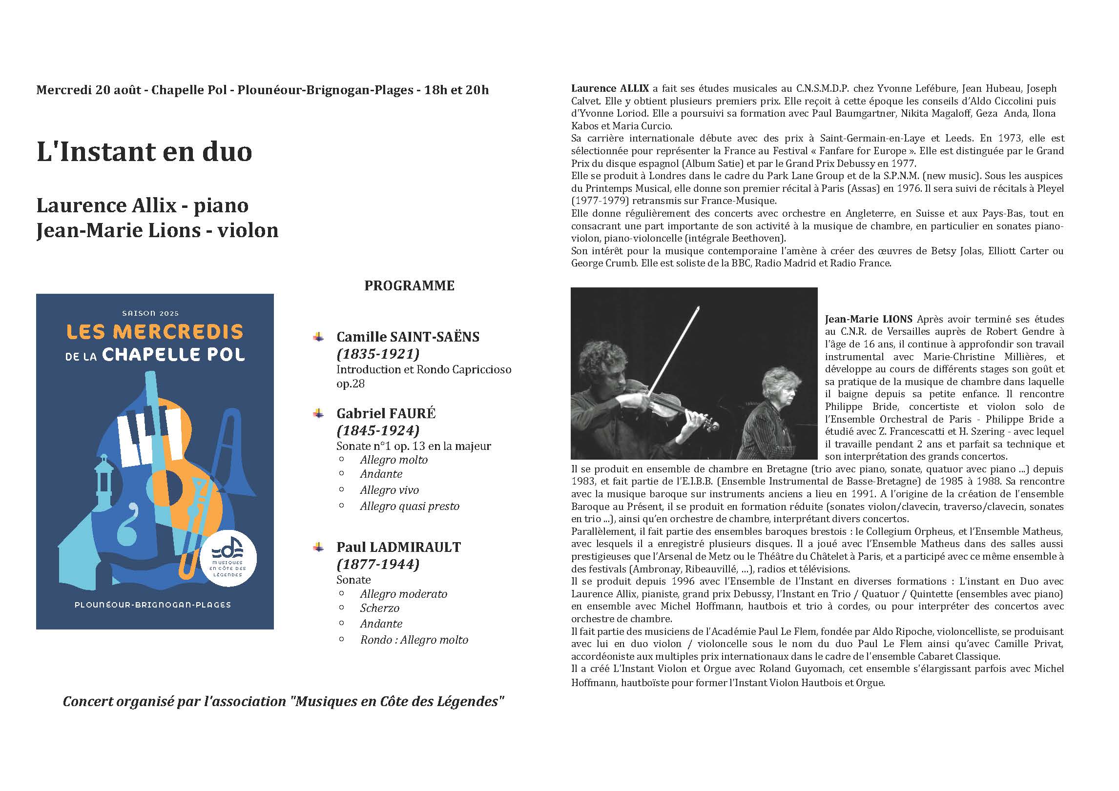Laurence Allix, piano - Jean-Marie Lions, violon