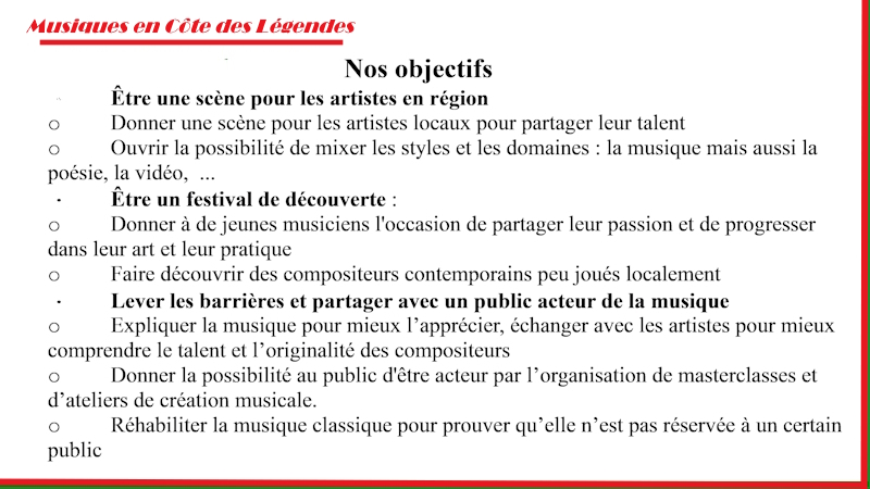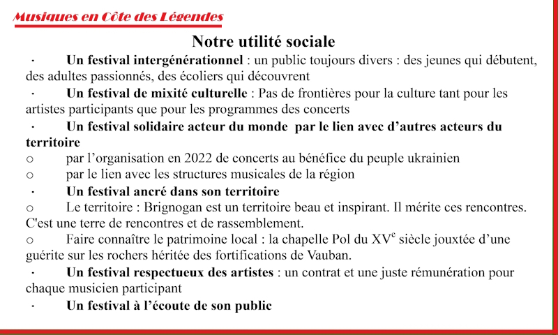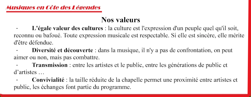 "Musiques en Côte des Légendes" sous pli à l'adresse