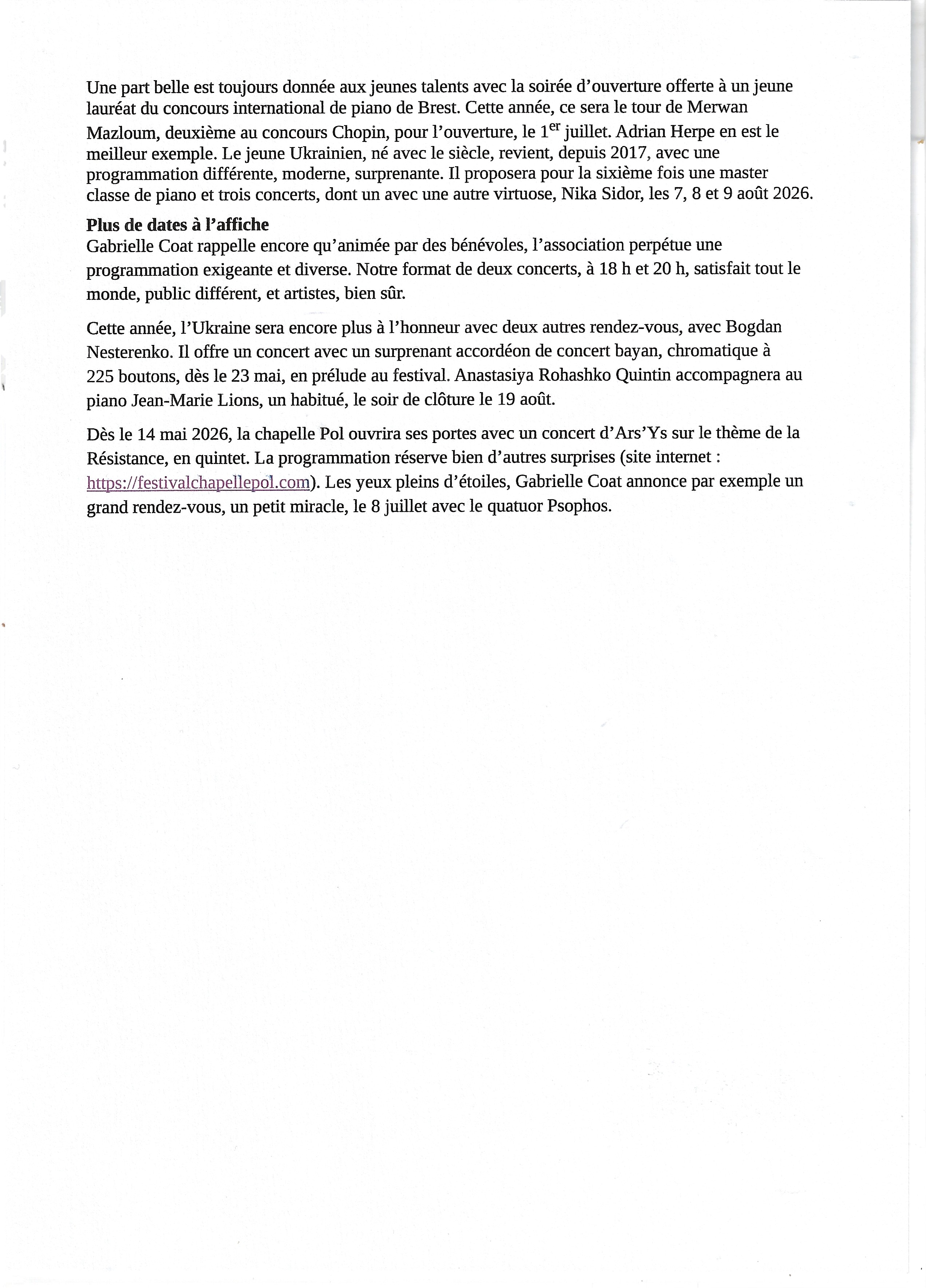 Le Festival de la chapelle Pol est quasiment