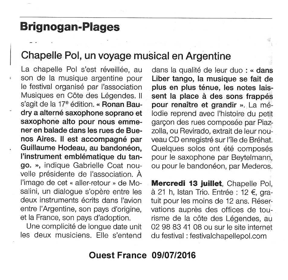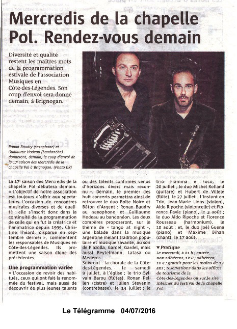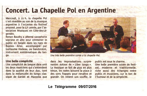 Mercredi 6 juillet 2016 - Chapelle Pol - "Boîte noire et Bâton d'argent" - Tango at night