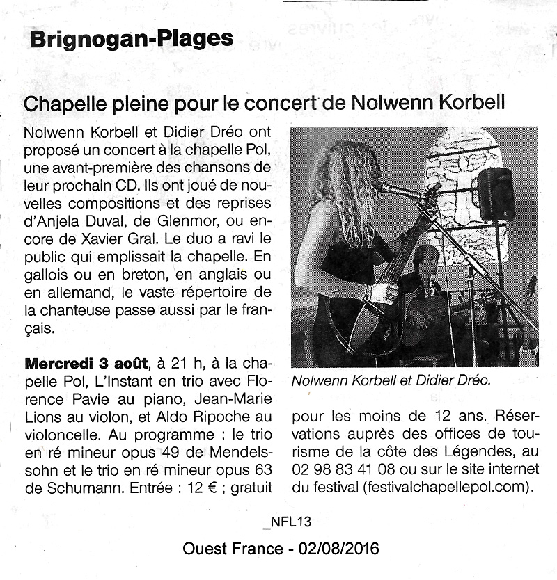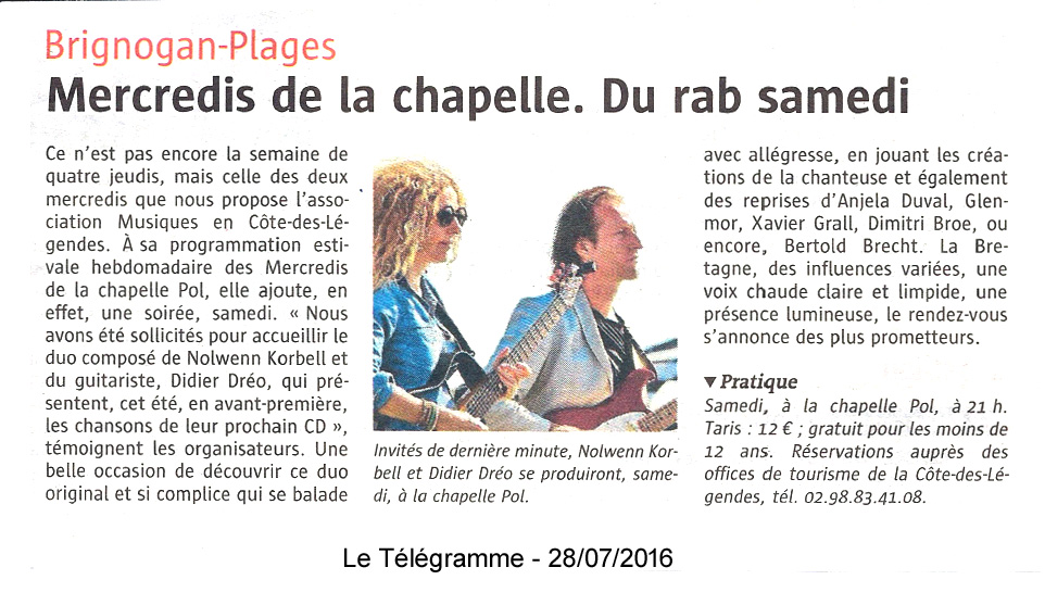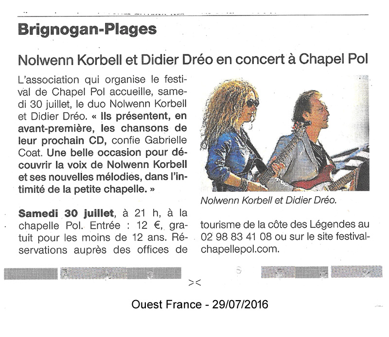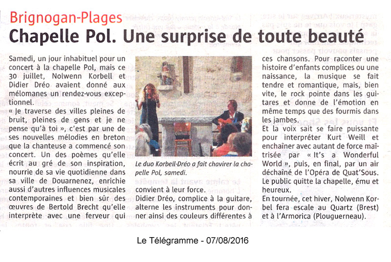 Samedi 30 juillet 2016 - Chapelle Pol - Nolwenn Korbell et Didier Dréo