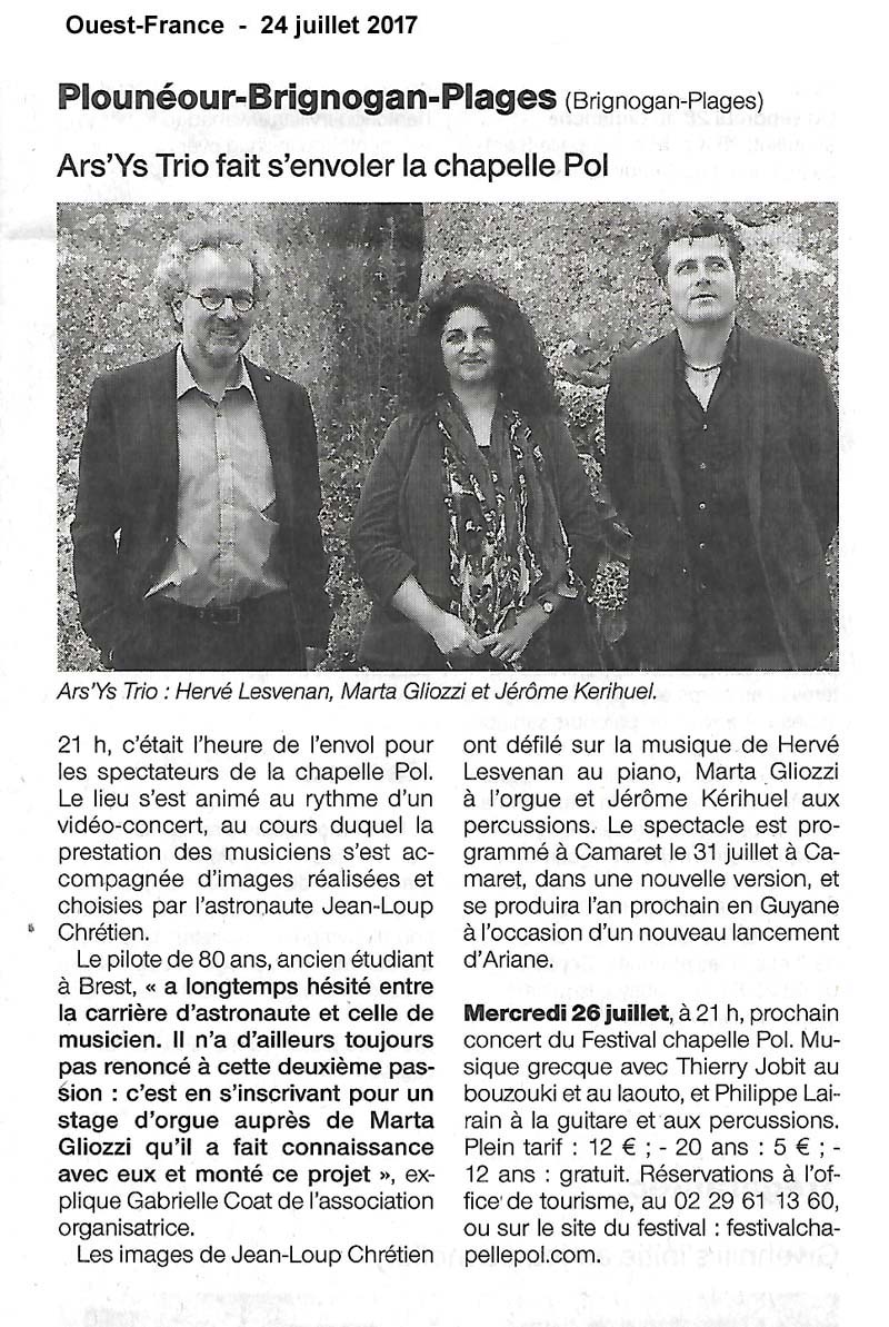 Ars'ys Trio - Hervé Lesvenan et Martha Gliozzi, orgue - Jérôme Kerihuel, percussions