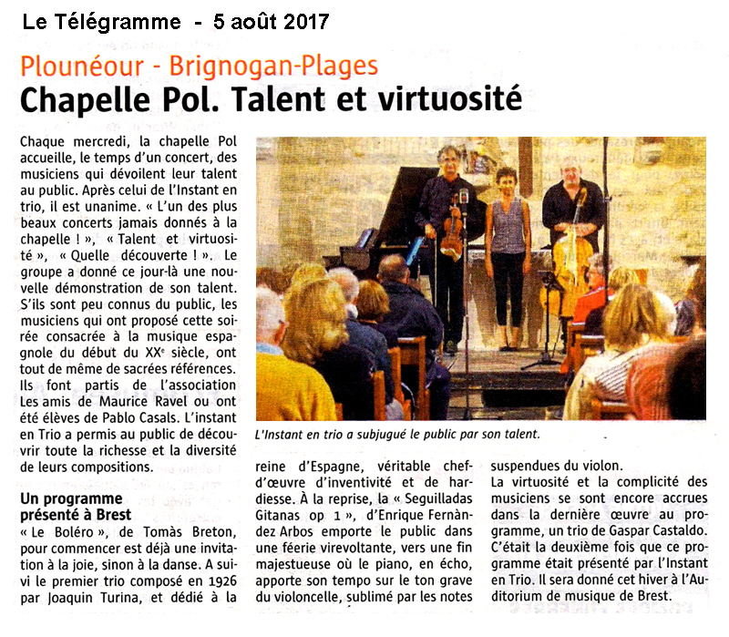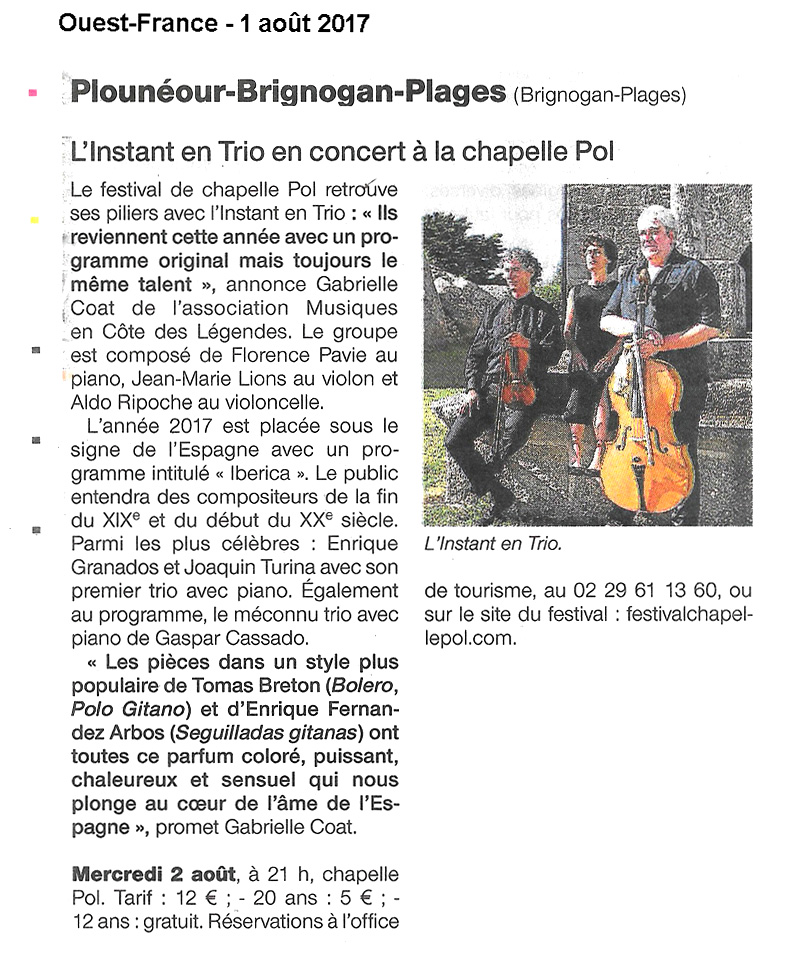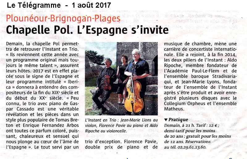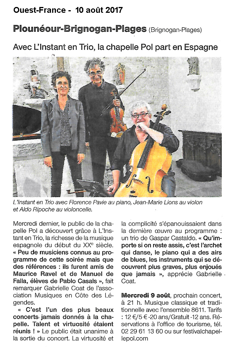 Jean Marie Lions, violon - Florence Pavie, piano - Aldo Ripoche, violoncelle.