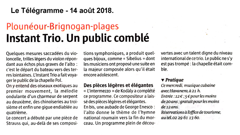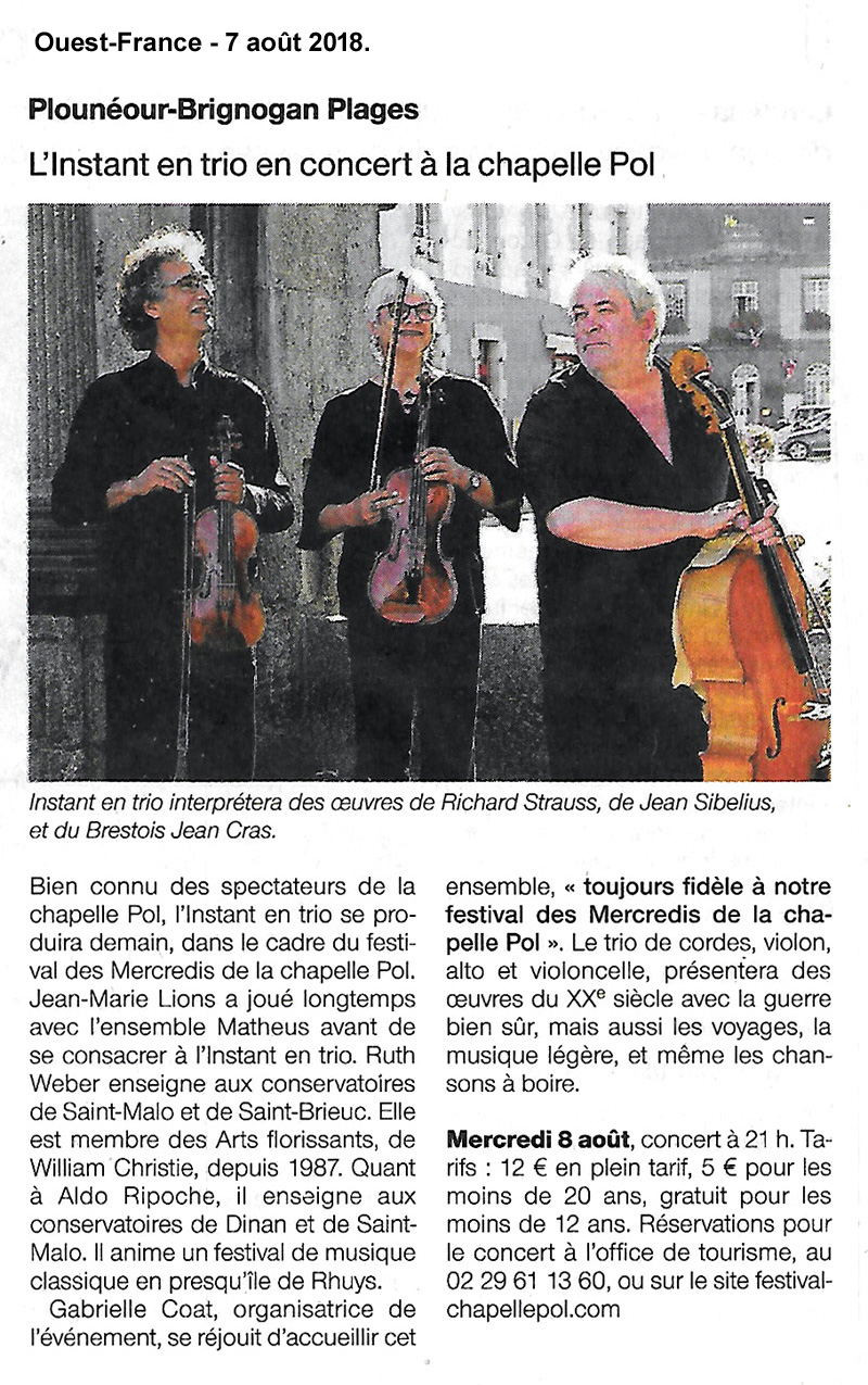 C'est sous la forme d'un ensemble à cordes qu'est revenu "l'Instant en trio" cette année. Quel bonheur de les retrouver : toujours fidèles à notre festival, toujours renouvelés.