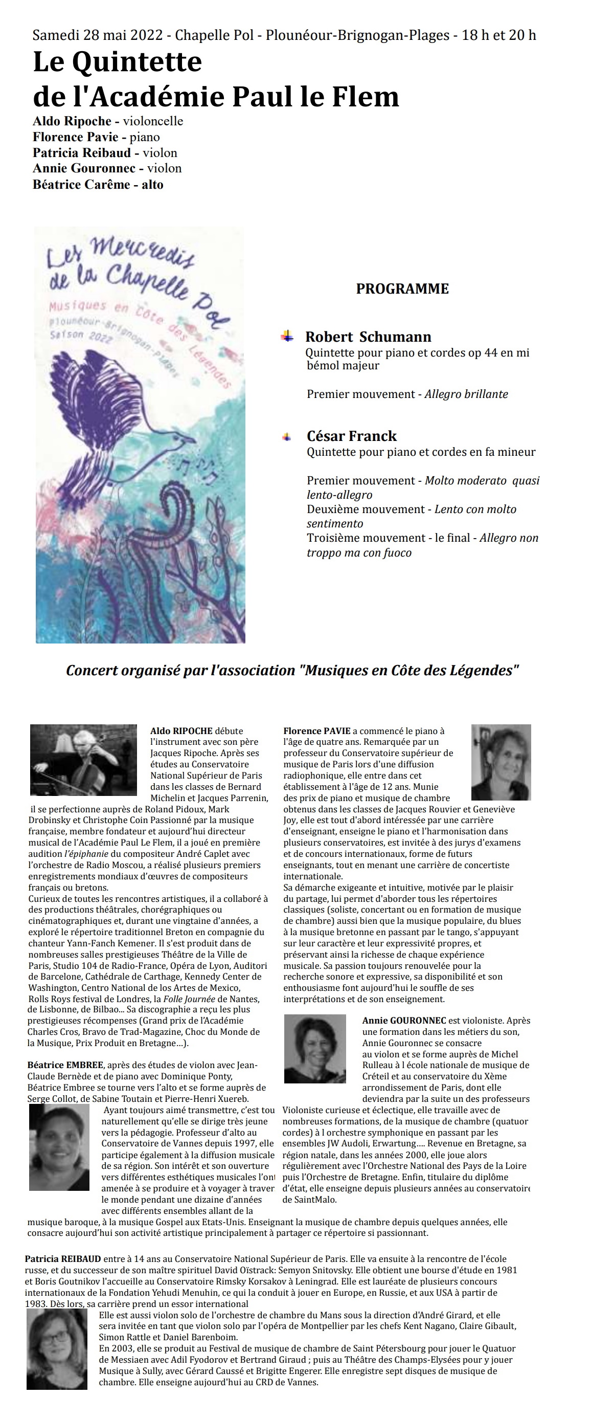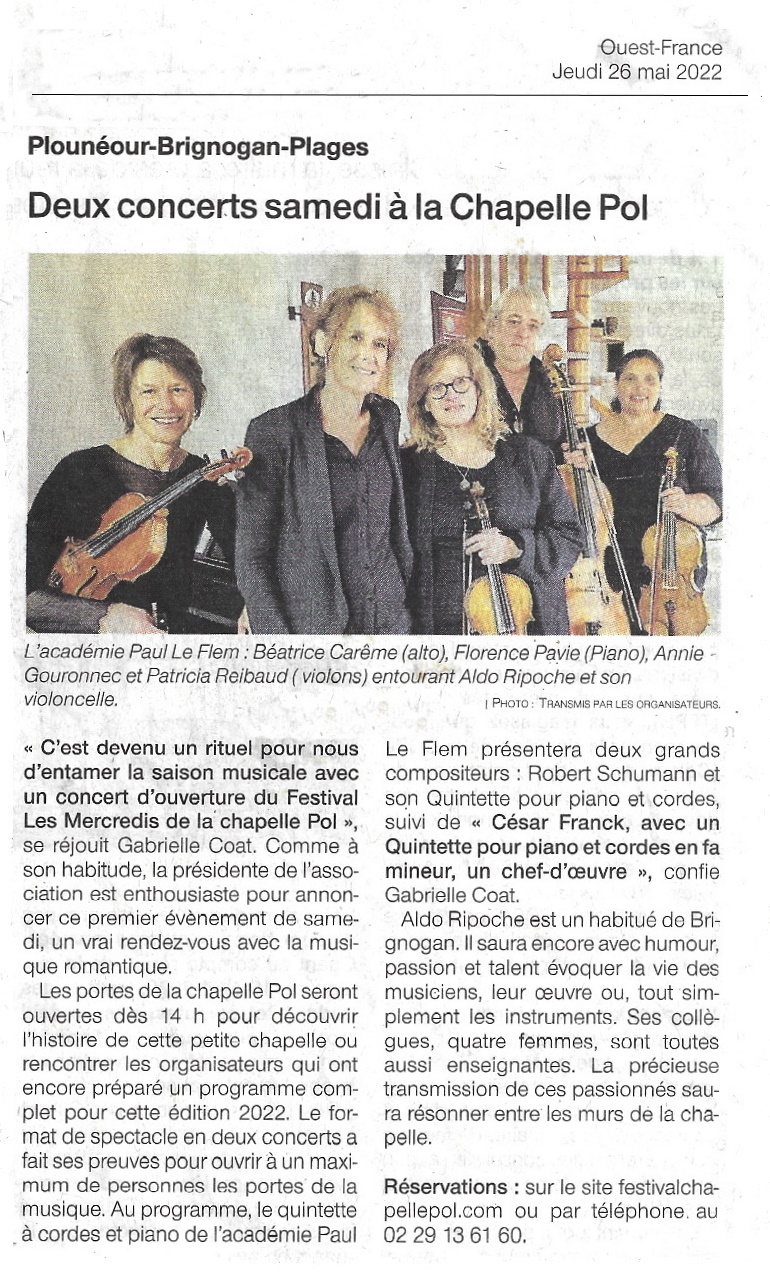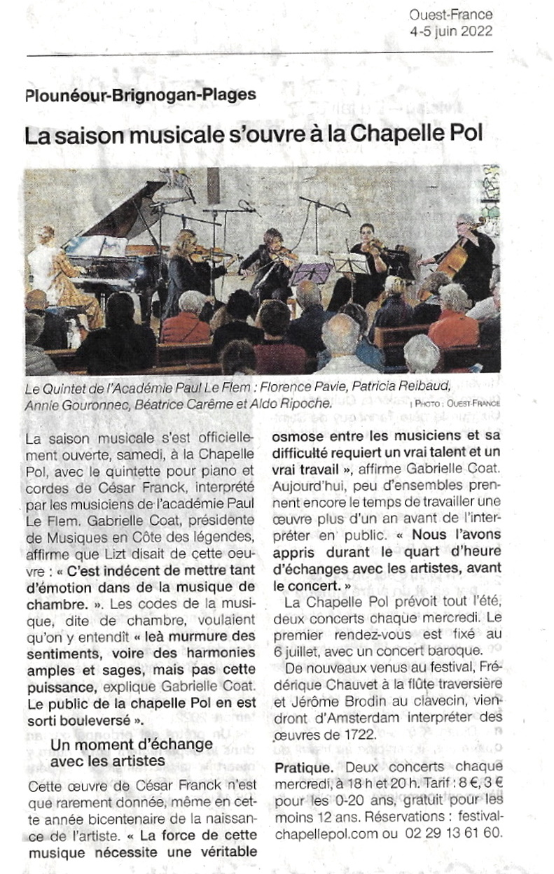 2022. donné par le Quintette de l'Académie Paul Le Flem.
