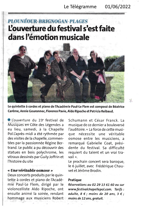d'ouverture de la saison 2022 des "mercredis de la chapelle Pol". |