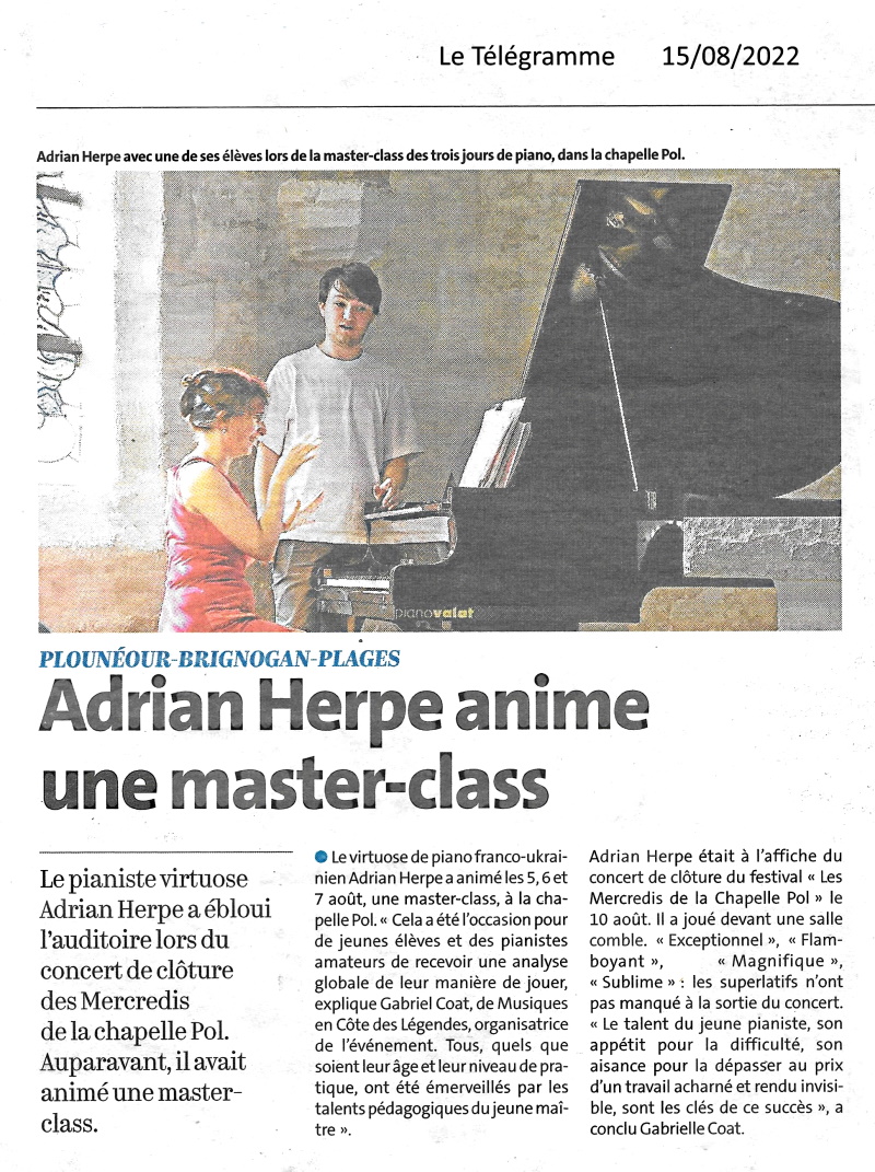 10h à 13h et de 17h à 20h : Masterclasses à la chapelle Pol.