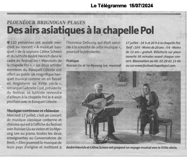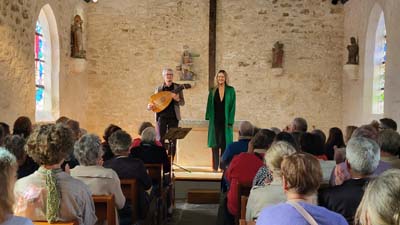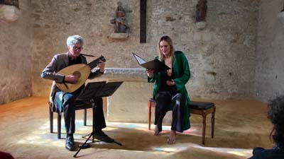 Céline Scheen et André Henrich, tous deux artistes membres du Banquet Céleste, ont offert au public de la chapelle Pol, un magnifique banquet musical comme on en faisait en Angleterre notamment au XVIIe siècle.
