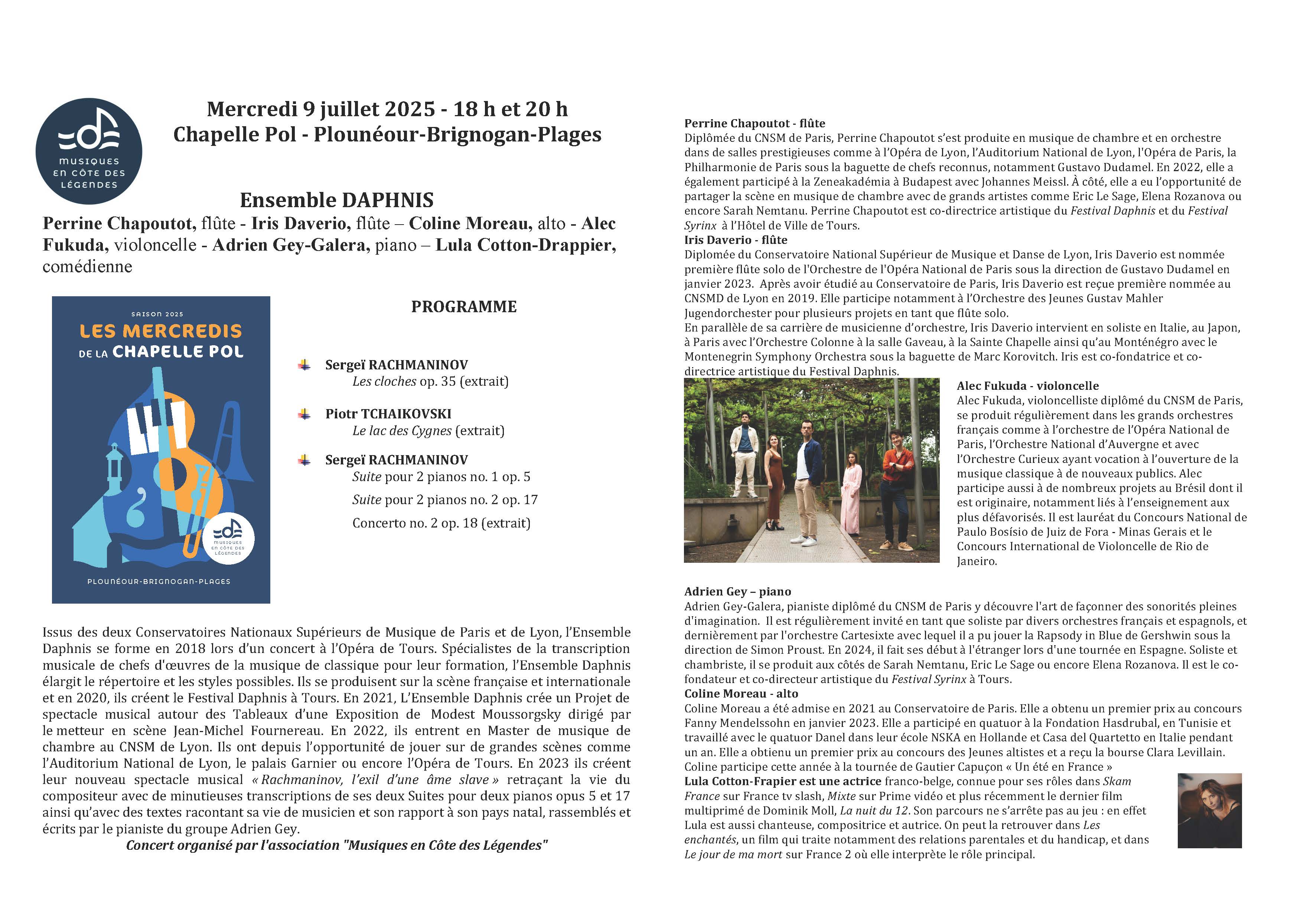 MUSIQUES EN CÔTE DES LÉGENDES Les mercredis de la chapelle Pol |
