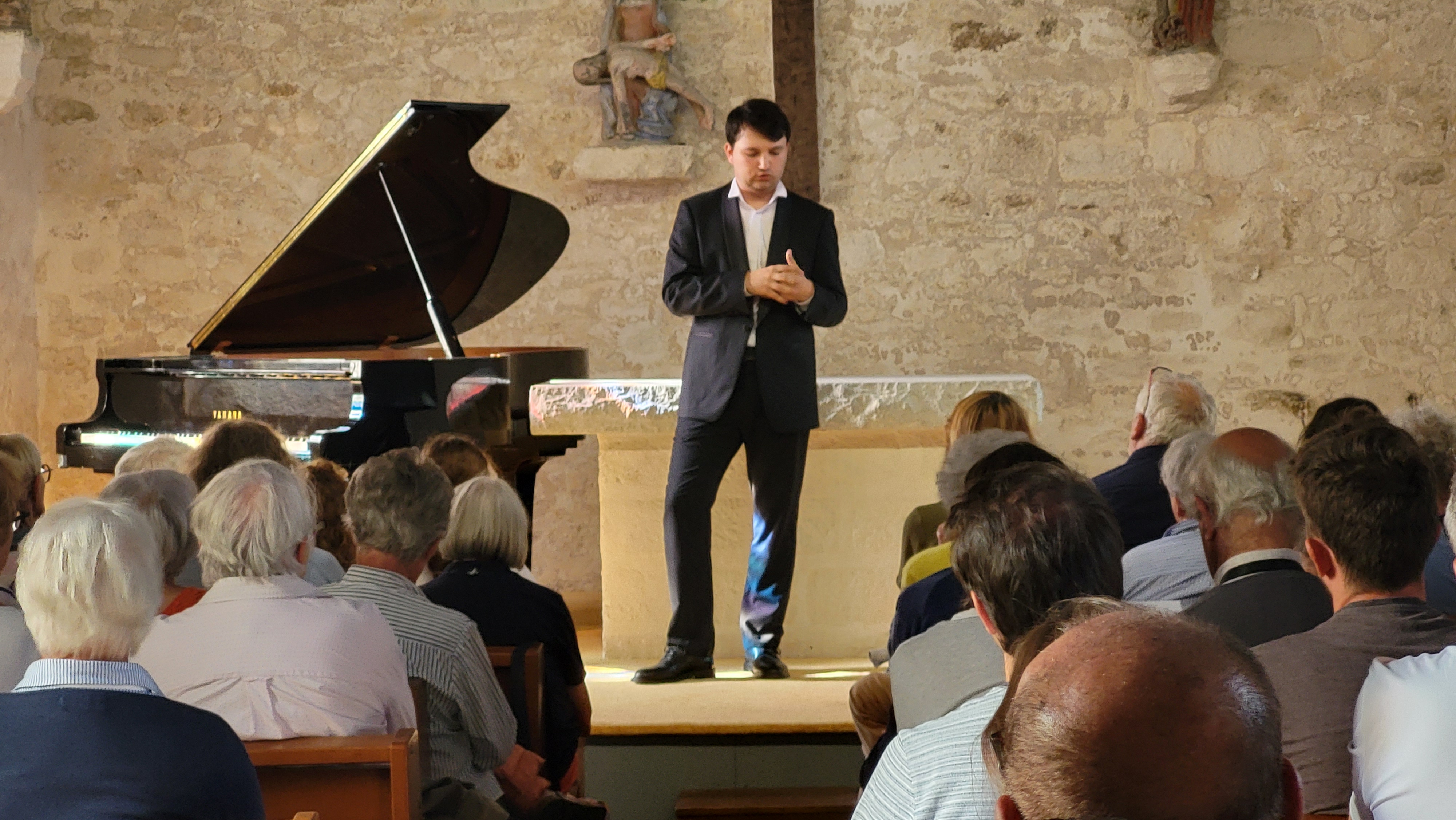 Adrian Herpe n’a pas l’habitude de présenter les programmes qu’il interprète dans le cadre des mercredis de la chapelle Pol, contrairement à ceux des Trois Jours de Piano. Mais il a pensé que le programme de cette année particulièrement exigeant pour le public nécessitait une explication ou au moins une mise en atmosphère. Et le public a particulièrement apprécié cette introduction. Le programme débute par la noblesse et la sensibilité du Nocturne n°6 de Gabriel Fauré, une œuvre qui, tournée vers le passé, regarde l’avenir. Inspiré par les fameux Nocturnes de Chopin, Fauré nous fait découvrir des harmonies aventureuses . Et sous les doigts d’Adrian Herpe, nous avons été emportés dans ce monde de sensibilité et de charme. Adrian Herpe a introduit ensuite la monumentale deuxième sonate de Brahms – vrai chef d’œuvre écrit par le compositeur seulement âgé de 19 ans. La musique est pleine de conflits et de tourments entre passion fougueuse pour Clara Schumann et sentiment de culpabilité pour Robert Schumann. Il nous a emmenés dans les méandres de la solitude, la furie et l’agitation extrême de cette œuvre. Ce fut un vrai voyage musical de plus de trente minutes rempli d’émotion. Après les tourments viennent deux bis de musique française : la première barcarolle de Gabriel Fauré nous a plongés dans la nostalgie et la valse à la manière de Borodine de Maurice Ravel nous a emportés sur une touche slave. Les deux concerts de 18h et de 20h étaient encore une fois complets, prouvant encore une fois l’attrait du public pour le haut niveau de qualité de la programmation du festival des Mercredis de la Chapelle Pol.