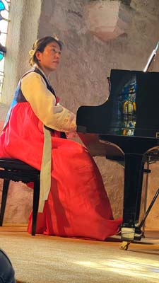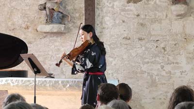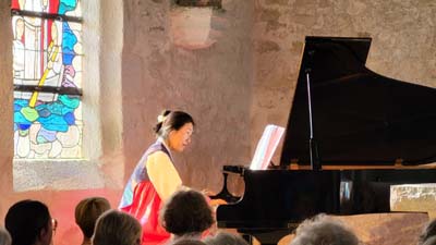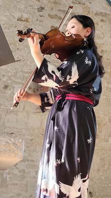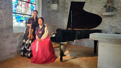 Chaque mercredi est une découverte à la chapelle Pol. Et ce 17 juillet n’a pas manqué à la tradition, il l’a même magnifiée.Ruixian Liu et So Myoung Lee vivent en France depuis plus de 20 ans, mais elles ont gardé au cœur toute la richesse de la musique de leurs pays d’origine : la Chine et la Corée.Le compositeur coréen Min-Chong Park, venu en France dans les années cinquante avait été sollicité par ses amis musiciens pour leur faire connaître sa musique traditionnelle. C’est ainsi qu’il a harmonisé, avec toute la richesse que permet la rencontre des cultures, des pièces traditionnelles coréennes tout en intégrant tout ce qu’il avait lui même découvert de la musique occidentale. Des bijoux avec un pouvoir de suggestion magique : le piano et le violon nous emmènent avec lui au bord de ce fleuve tranquille ...Autre pièce au programme : « Les amants papillons », des extraits d’une transcription pour piano et violon de cet opéra composé en 1959 par le compositeur chinois Chen Gang. Le livret raconte l’histoire de ces deux amants qui tels Roméo et Juliette ne pourront vivre leur amour. On suit la marche inexorable vers le drame. Mais ils se retrouveront dans la mort, métamorphosés en papillons à qui la note suspendue de l’archet de Riuxian Liu a donné vie.Le talent des artistes, actuellement toutes deux enseignantes au Conservatoire de musique de Brest, s’est aussi exprimé dans la si belle et si complexe sonate n°3 de Debussy, et pour finir, en bis avec une « Habanera » de Jean Cras, pleine de poésie, de nostalgie et aussi de souvenirs de lointains rivages.Un concert d’autant plus dépaysant que les artistes portaient des vêtements traditionnels éblouissants d’élégance et de beauté.