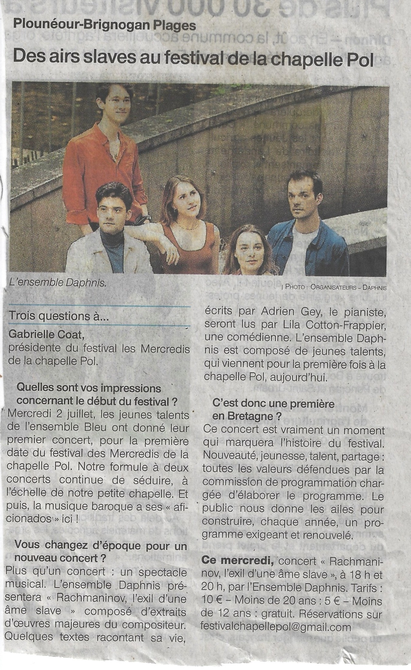 MUSIQUES EN CÔTE DES LÉGENDES Les mercredis de la chapelle Pol |
